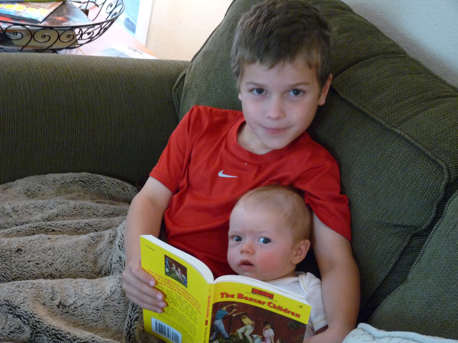 Coen has the best big brothers. Look at that, forget picture books, the baby is moving right into chapter books.